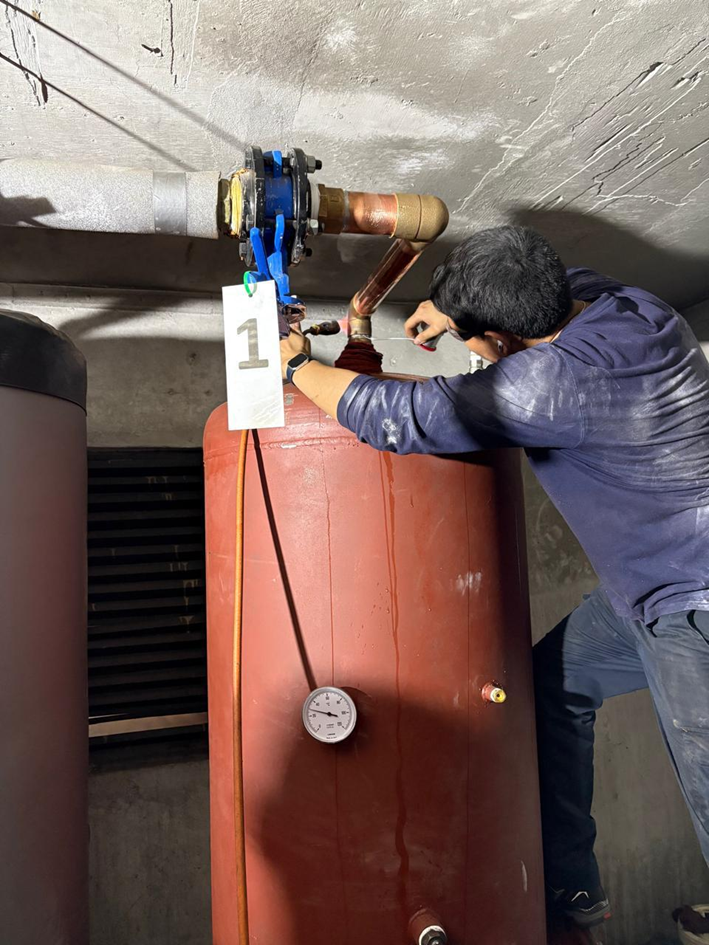 Clima Edificio ha realizado la instalación de un nuevo acumulador de agua caliente de 1500 litros en una comunidad de la comuna de Vitacura. El acumulador antiguo, que había sido reparado en varias ocasiones, fue sustituido debido a una filtración reciente, lo que llevó a la comunidad a decidirse por un nuevo dispositivo.